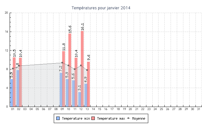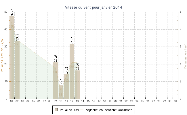 | 01 | 5.9 °C | 10.5 °C | 8.1 °C | 4.4 km/h (47.5 km/h) | SSO |